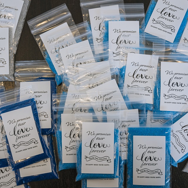受付では挙式で使用するサンドセレモニーの準備が行われ