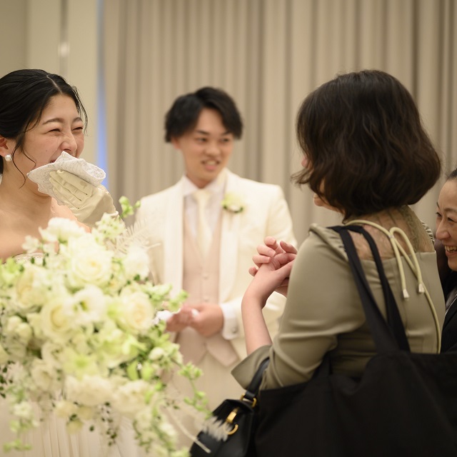 お見送りドレスに身を包んだ新婦様とセカンドミートを行い、