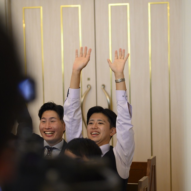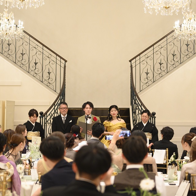 無事にゲストの皆様に結婚の賛同をいただいたおふたり