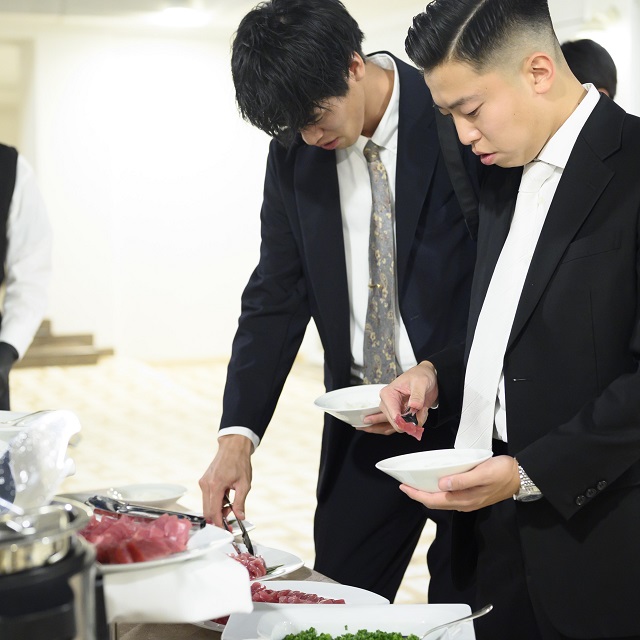 解体したマグロはお茶漬けブッフェに早変わりし、ゲストの皆様全員にも楽しんでいただきました♪
