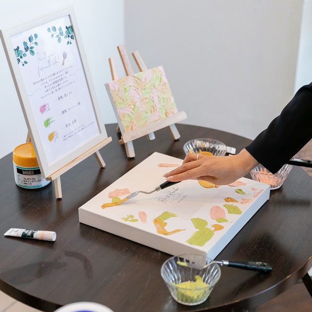 オリジナルのキャンバス結婚証明書にペイントをし、