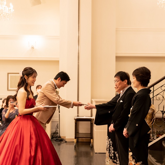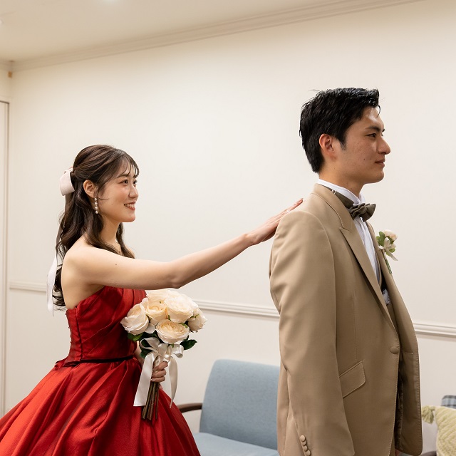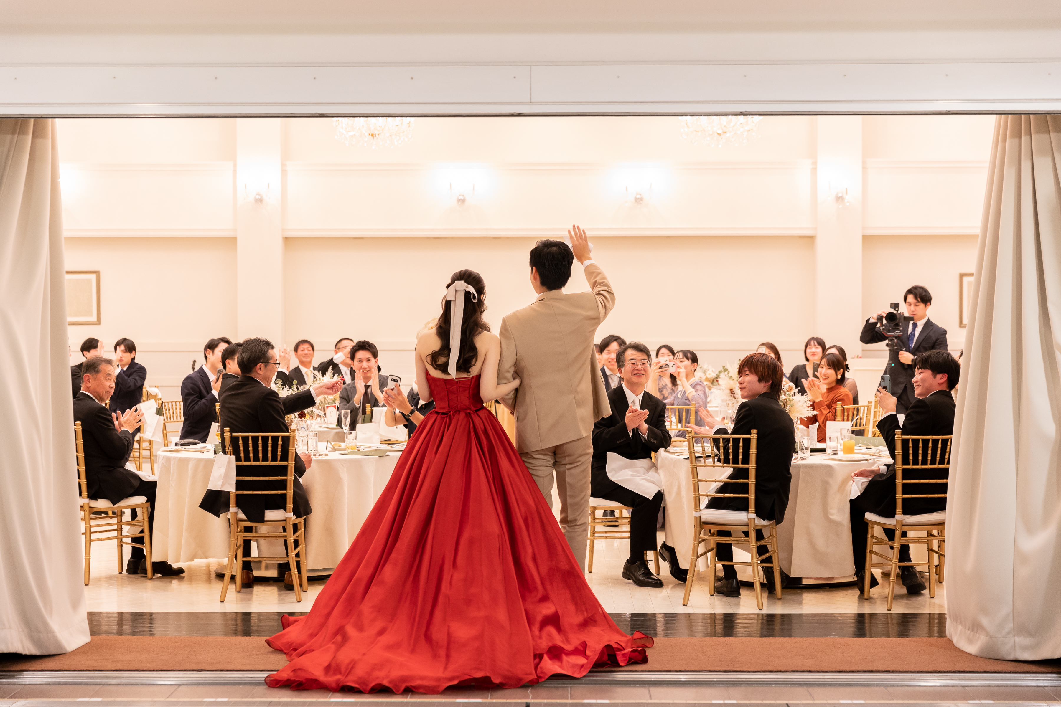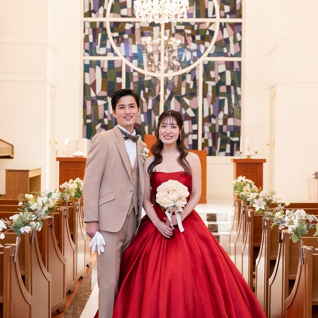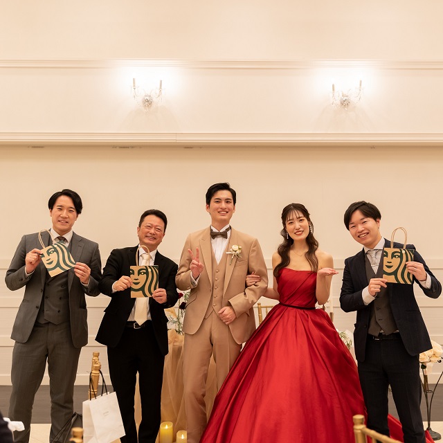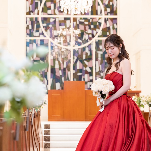 真っ赤なドレスに身を包んだ新婦様の美しさに、