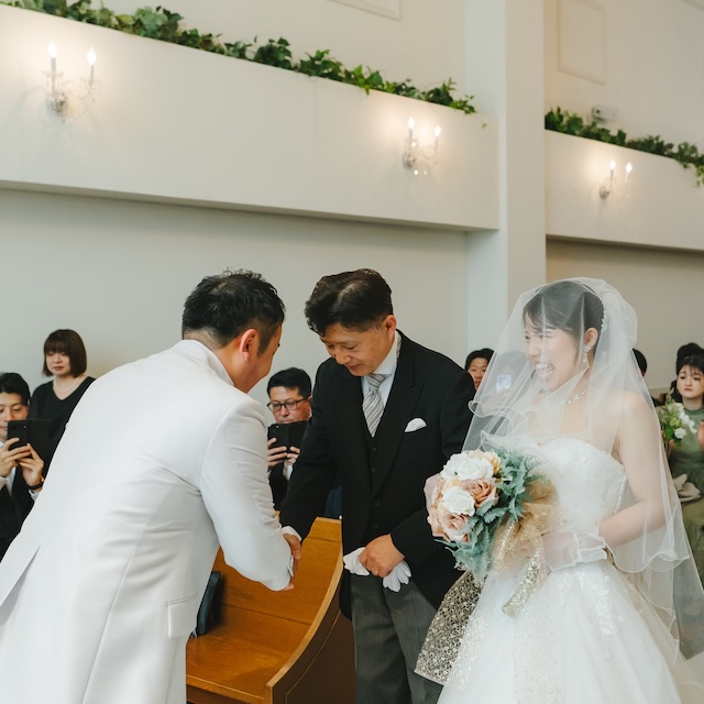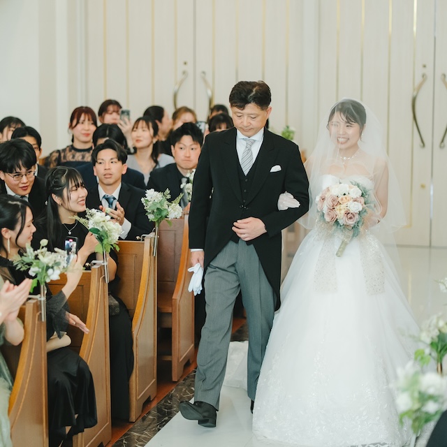 お父様と一歩一歩噛み締めながらバージンロードを進み新郎様の元へ