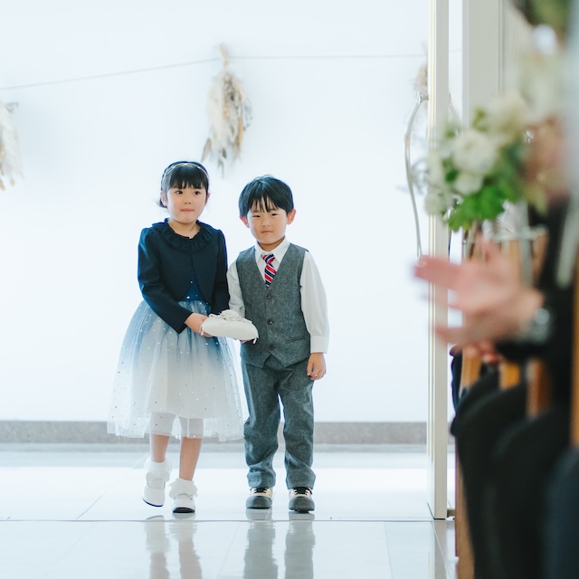 指輪の交換には可愛いリングボーイ&ガールを迎え