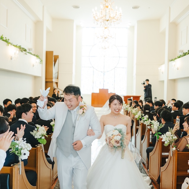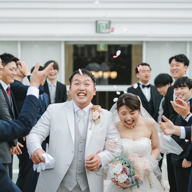 まさかの長さにおふたりも驚きつつ、幸せの花吹雪に包まれながら