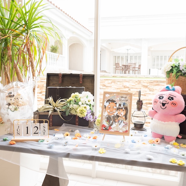 おふたりがお支度中の間は、妹様にとろろくんをあずけ、一緒に受付スペースでゲストの皆様をお出迎え♪