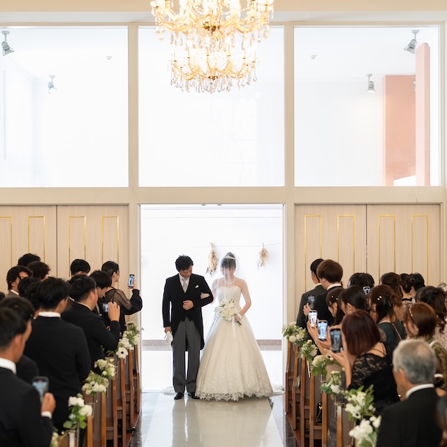 親御様に最後のお支度のお手伝いやエスコートをしていただき感動の入場からスタート