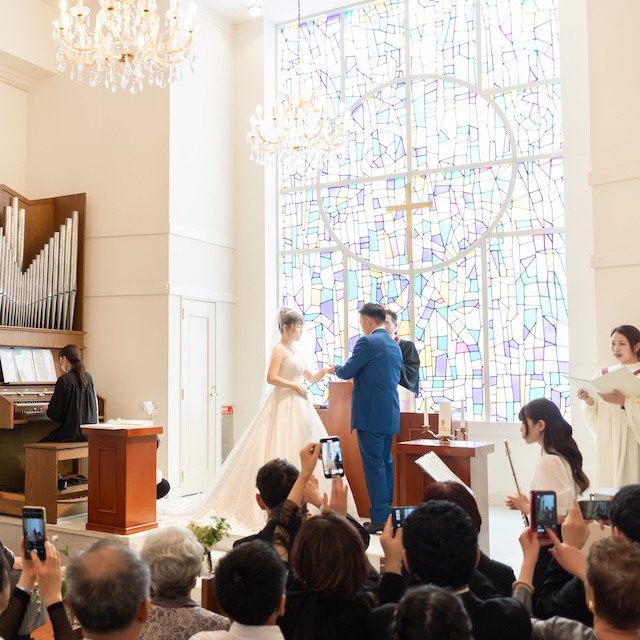 挙式はキリスト教式で厳かに