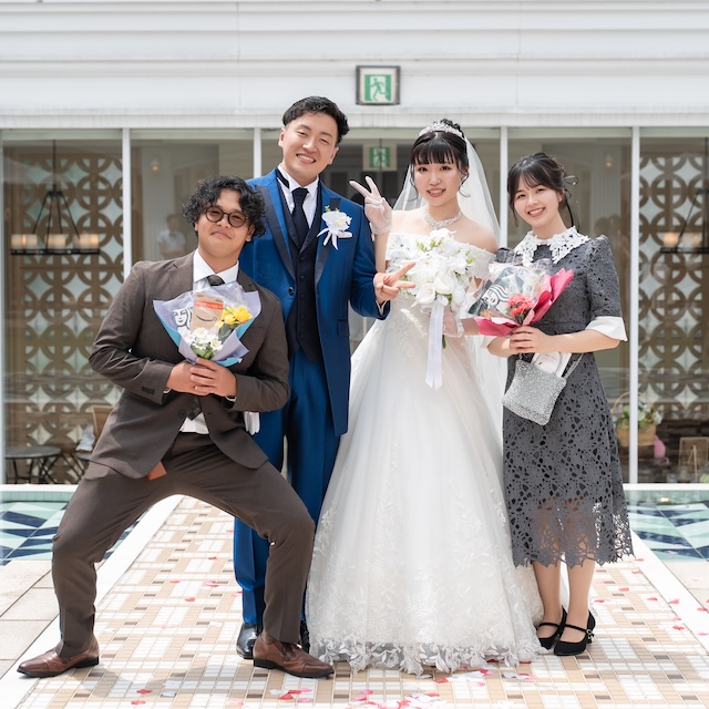 退場の最後はクロージングハグで記念写真タイムをもうけ、皆様に祝福されながら結びを迎えました♪