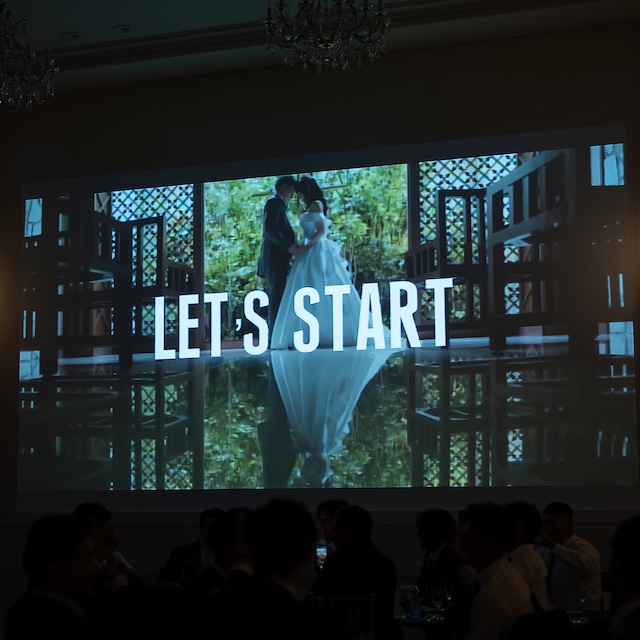 手作りオープニングムービーを流し、ガーデンに面した大窓から入場♪