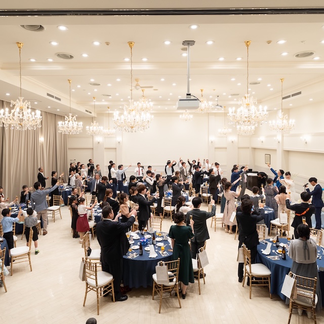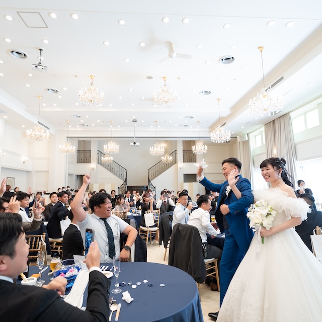 乾杯後はご歓談メインのお時間を大切にされ、お色直しのため一度会場を後にします