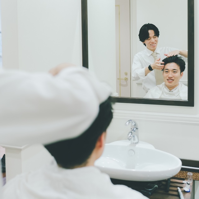そのあとは新郎様のご友人様と合流し、新郎様のヘアセット!