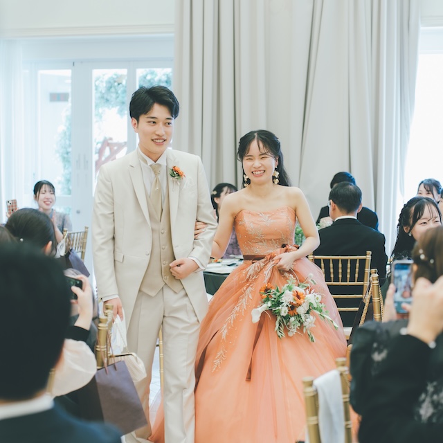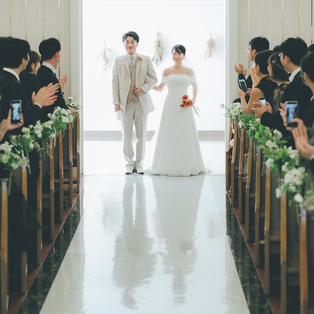 たくさんのゲスト様に見守られながら笑顔で入場後、