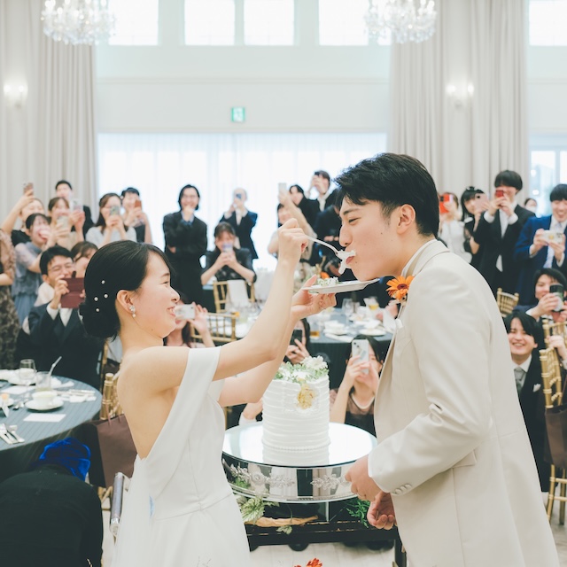 ウェディングケーキ入刀&ファーストバイトを行ったあとは、お色直しのため一旦退場